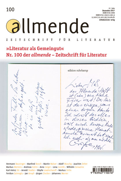 Zahlreiche Ausgaben der allmende seit 1981 sind noch erhältlich. Wenn Ihnen bisher erschienene Ausgaben in Ihrer Sammlung fehlen, können Sie diese bequem hier nachbestellen.